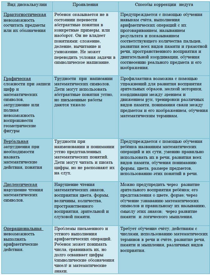 Виды, проявления дискалькулии и способы ее коррекции